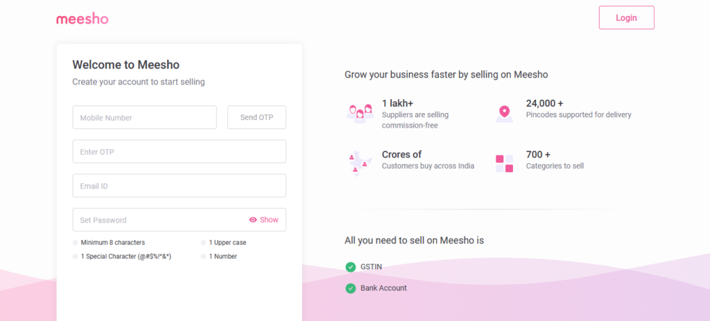 Become a supplier on Meesho by obtaining a GSTIN and opening a bank account. After completing the Meesho seller registration process, you can access the Meesho supplier panel.